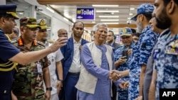 Yunus yê 84 bi firokekê ji Parîsê rabû li Firîngeha Navneteweyî ya Hasrat Şahjalal daket. Rêberê Artêşa Bangladaşê General Waker-Uz-Zaman û hin karbidestên din yên payabilind yên leşkerî çûn pêşwazîya wî.
